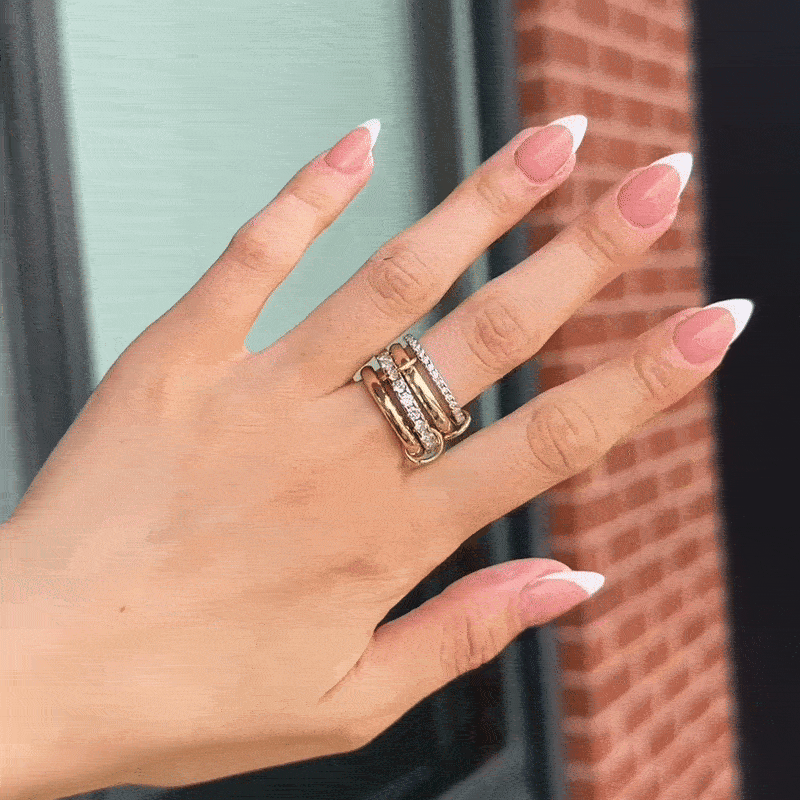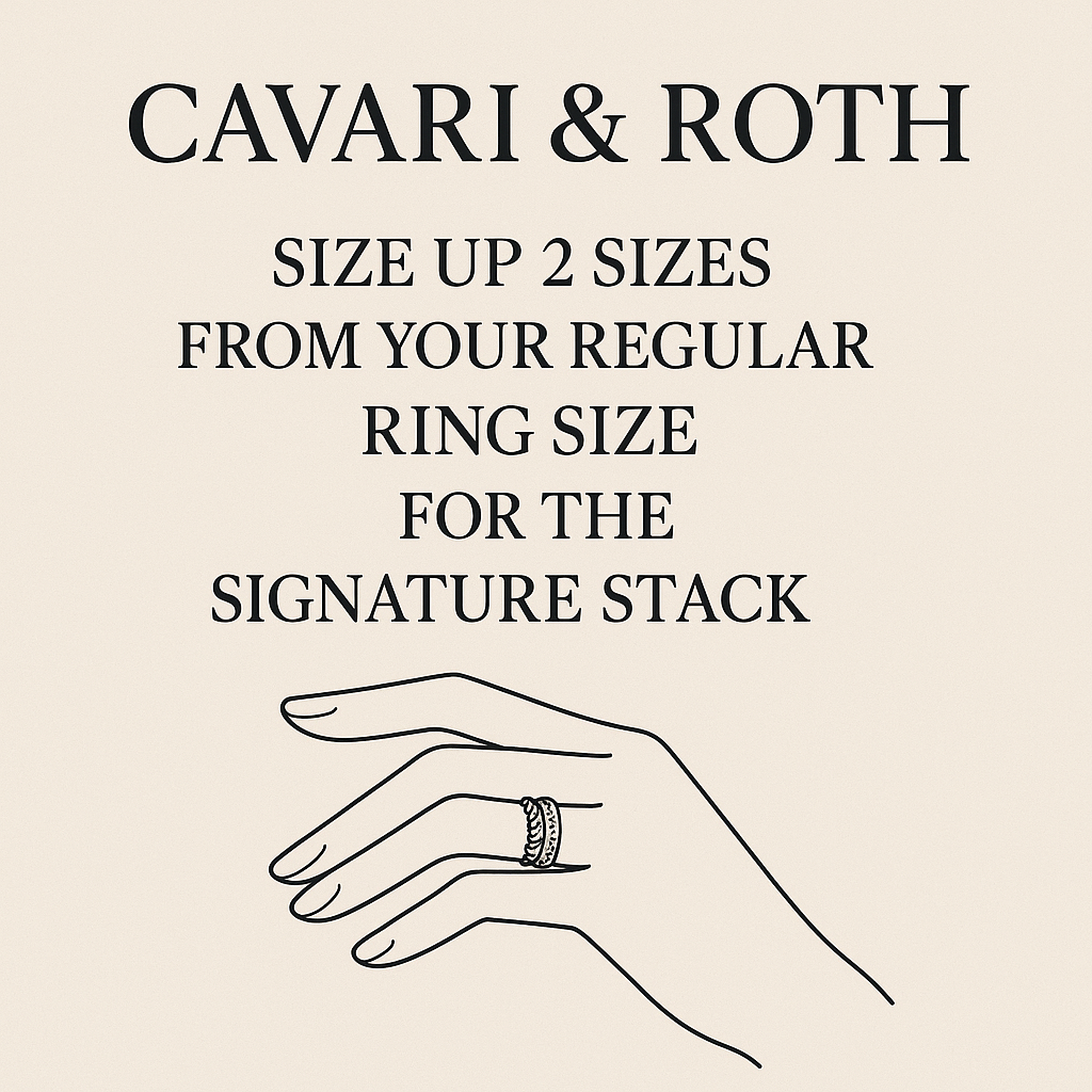 Because of the interlocked design, fit can vary slightly — especially with stackable rings like our Signature Stack. We recommend sizing up 1–2 sizes for the most comfortable fit.